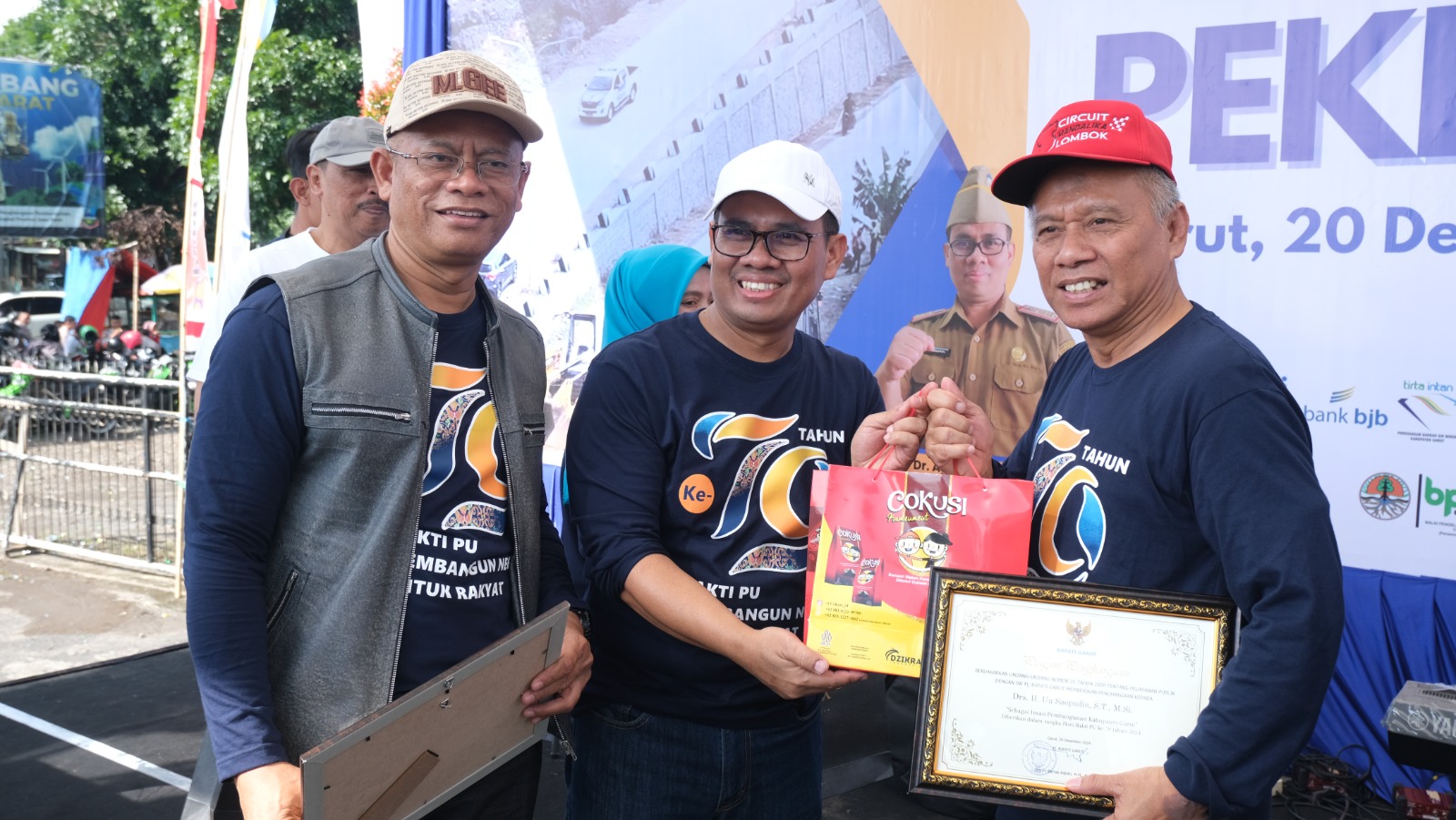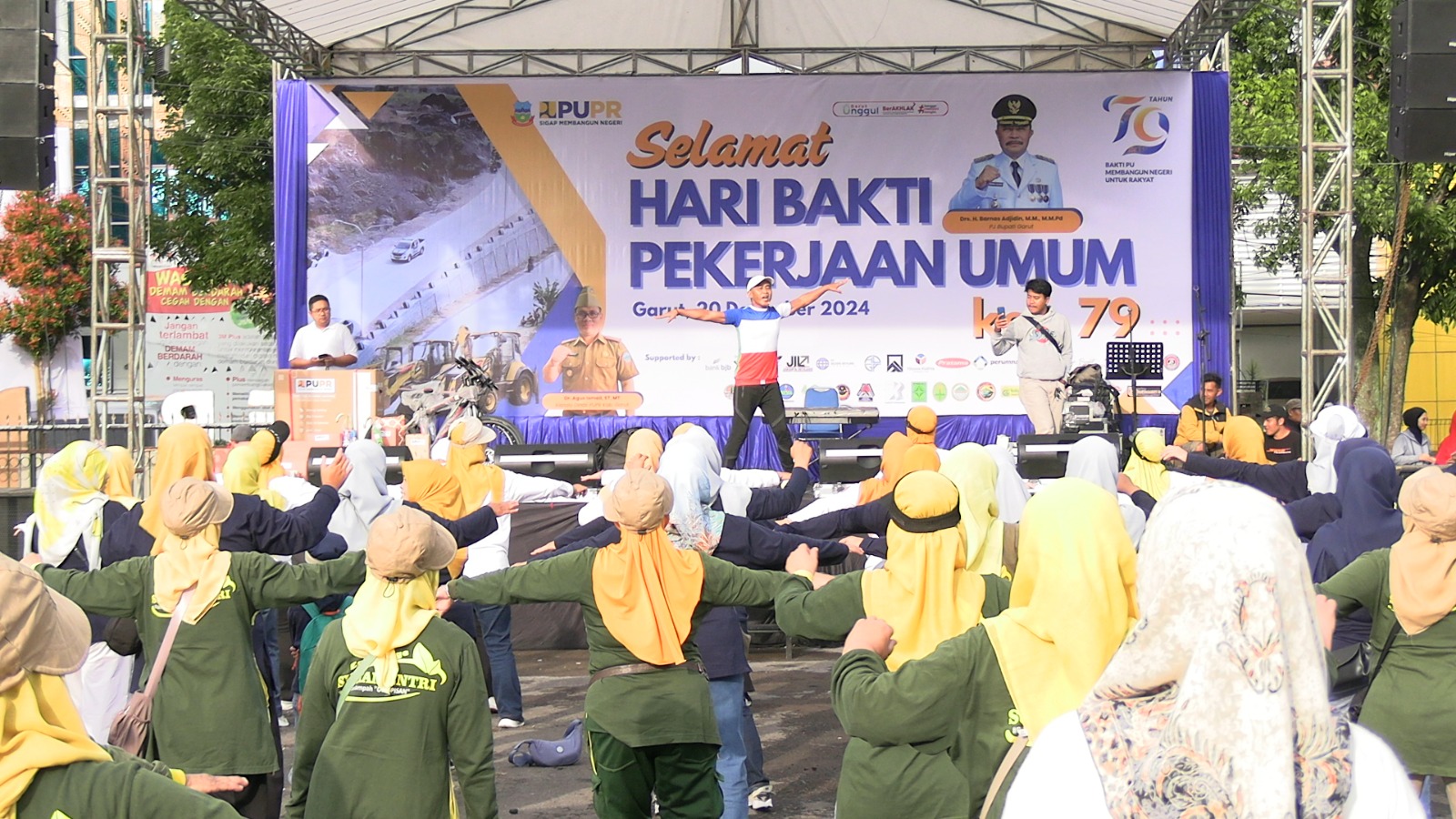 GARUT BERKABAR,Tarogong Kidul – Kepala Dinas Perumahan dan Pemukiman (PUPR) Dr. Agus Ismail, ST., MT., didampingi Sekretaris Dinas Pekerjaan Umum (PUPR) Edi Kuntoro, ST., MT., memberikan pernyataan dalam peringatan Hari Bakti Pekerjaan Umum (PU) ke-79. Acara ini digelar di halaman kantor PUPR, Jalan Samarang, Kecamatan Tarogong Kaler, Jumat (20/12/2024), pagi. Dalam wawancara, Dr. Agus Ismail menjelaskan bahwa Hari Bakti PU, yang diperingati setiap tanggal 3 Desember, merupakan penghormatan terhadap kontribusi besar sektor pekerjaan umum dalam pembangunan infrastruktur di Indonesia.