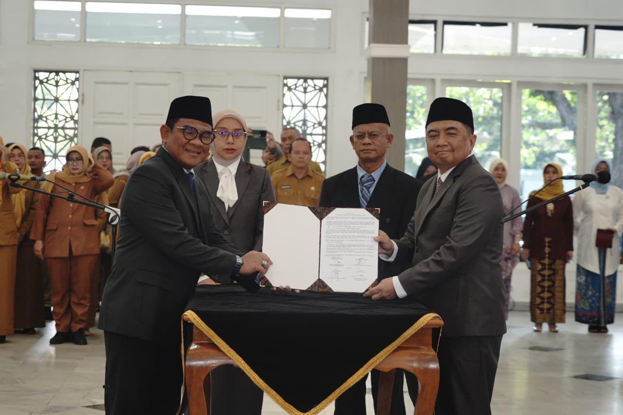 Bupati Garut, Abdusy Syakur Amin, melantik dan mengambil sumpah jabatan 69 ASN struktural dan 19 ASN fungsional di Gedung Pendopo Garut, Kecamatan Garut Kota, Selasa (6/1/2026).