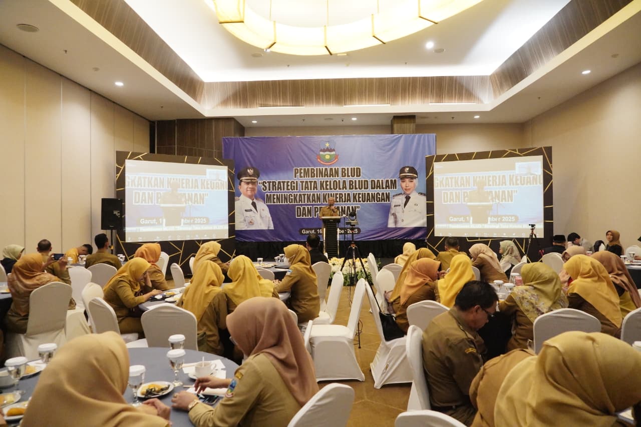 Sekretaris Daerah (Sekda) Kabupaten Garut, Nurdin Yana, membuka kegiatan Pembinaan Badan Layanan Umum Daerah (BLUD) bertema “Strategi Tata Kelola dalam Meningkatkan Kinerja Keuangan dan Pelayanan” di Ballroom Kassiti Fave Hotel Garut, Kecamatan Tarogong Kidul, Selasa (16/12/2025).