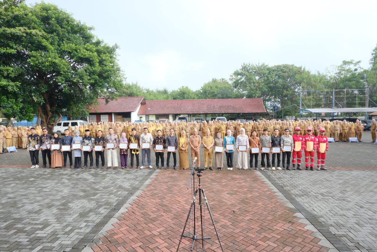 Sekretaris Daerah (Sekda) Kabupaten Garut, Nurdin Yana, memimpin Apel Gabungan yang dirangkaikan dengan penyerahan Piagam Pemuda Berprestasi dan penghargaan bagi Relawan PMI Kabupaten Garut di Lapangan Sekretariat Daerah (Setda) Kabupaten Garut, Jalan Pembangunan, Kecamatan Tarogong Kidul, Senin (19/1/2026).
