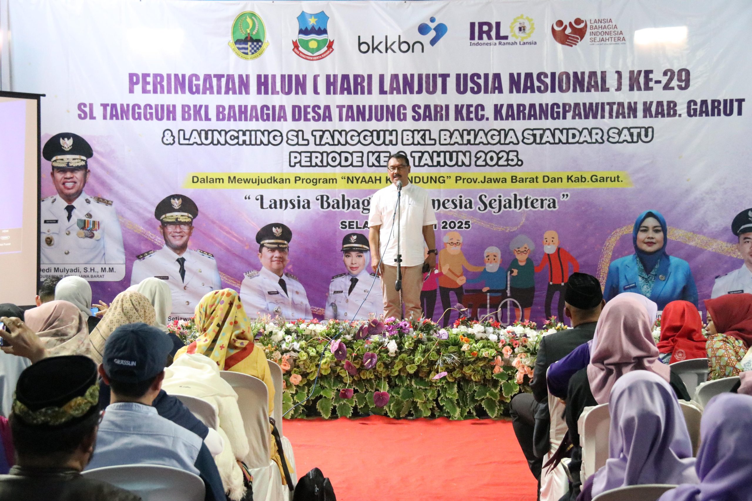Peluncuran Sekolah Lansia Tangguh dan peringatan HLUN di Aula Desa Tanjungsari, Karangpawitan, Garut, Selasa (22/7/2025).