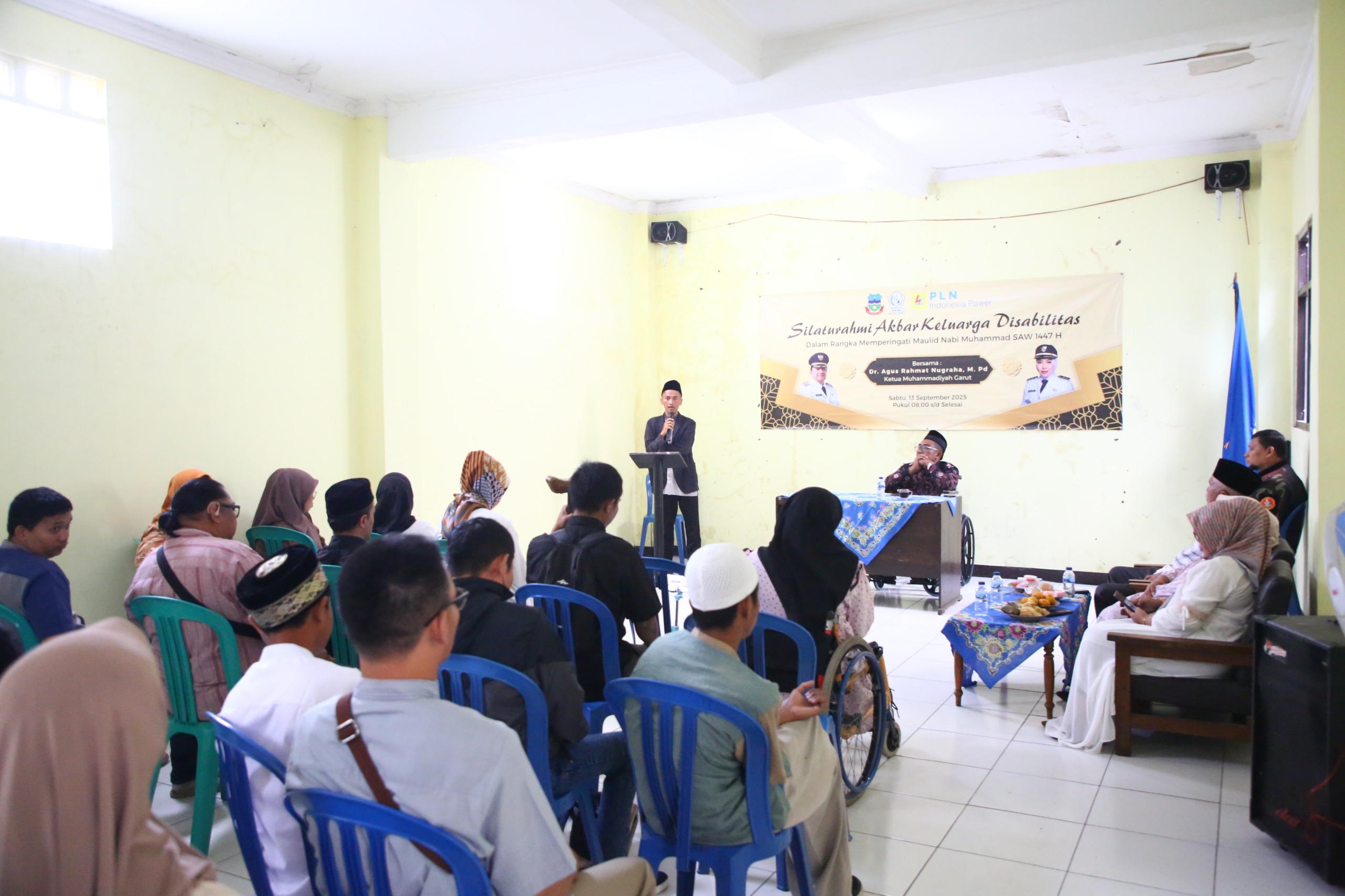 Momen kebersamaan keluarga penyandang disabilitas dalam peringatan Maulid Nabi Muhammad SAW 1447 H di Aula DPC PPDI Garut, Tarogong Kidul, Sabtu (13/9/2025).