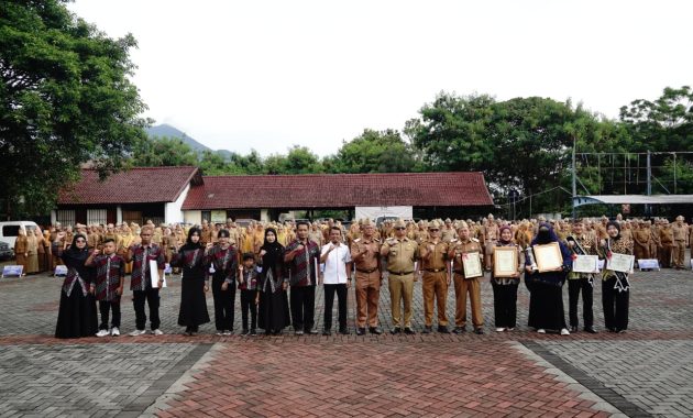 GARUT BERKABAR,Tarogong Kidul – Bupati Garut, Abdusy Syakur Amin, memimpin Apel Gabungan yang dirangkaikan dengan penyerahan penghargaan tingkat Provinsi Jawa Barat serta pelepasan calon transmigran asal Garut. Kegiatan tersebut digelar di Lapangan Sekretariat Daerah (Setda) Kabupaten Garut, Jalan Pembangunan, Kecamatan Tarogong Kidul, Senin (8/12/2025).