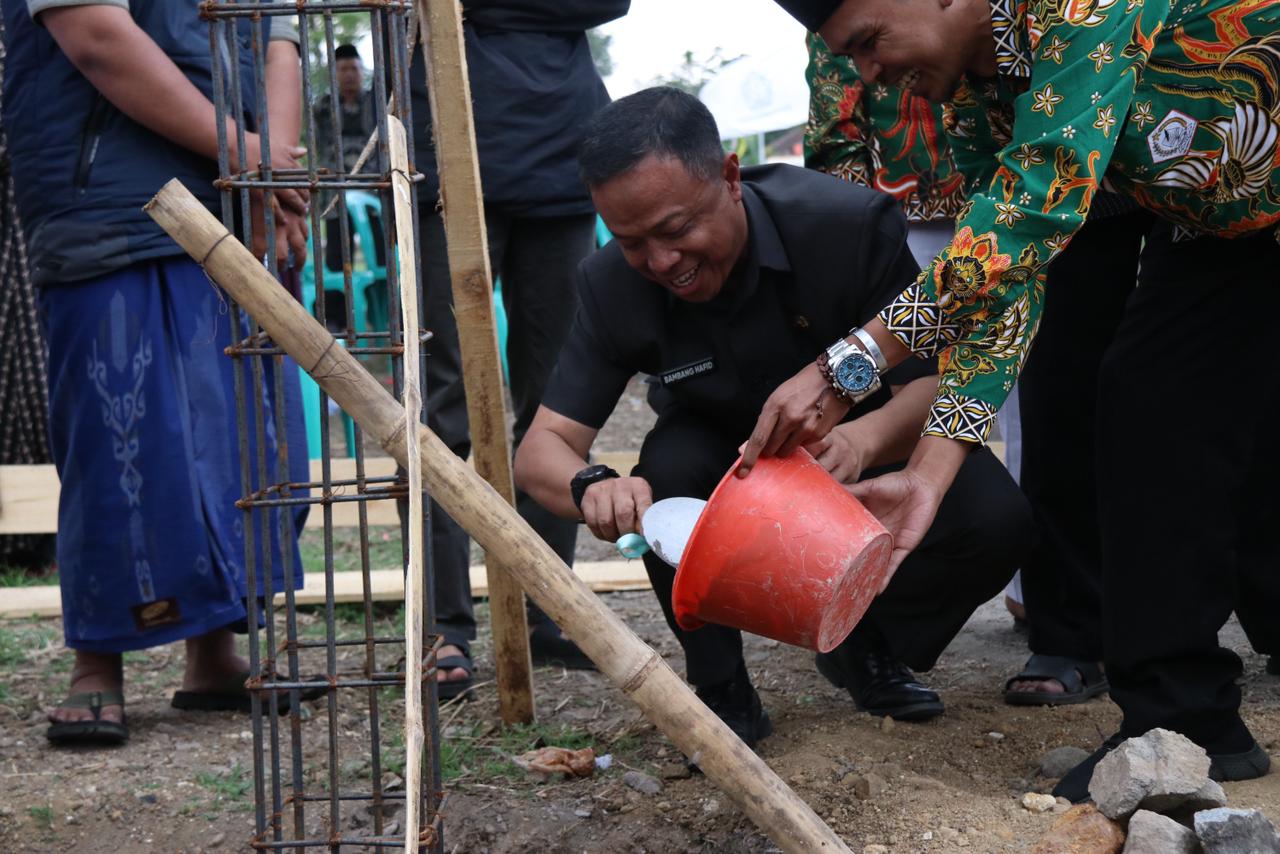 Prosesi peletakan batu pertama pembangunan Sekretariat DPAC FKDT Tarogong Kaler berlangsung di Kampung Saripulo, Desa Rancabango, Senin (28/7/2025).