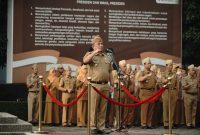 Bupati Garut, Abdusy Syakur Amin, memimpin Apel Gabungan di lingkungan Pemerintah Kabupaten Garut yang dirangkaikan dengan penyerahan SK Pemberhentian PNS memasuki BUP, penghargaan Predikat…