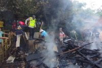 Petugas Polsek Limbangan saat melakukan pengecekan dan pengamanan TKP kebakaran rumah panggung di Desa Pasirwaru, Kecamatan Blubur Limbangan, Kabupaten Garut, Senin (29/12/2025). GARUT BERKABAR,…