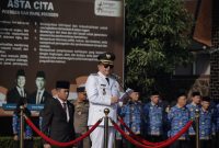 Bupati Garut, Abdusy Syakur Amin, memimpin upacara peringatan Hari Otonomi Daerah ke-30 tingkat Kabupaten Garut di Lapangan Sekretariat Daerah, Tarogong Kidul, Senin (27/4/2026). …