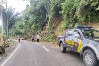 Petugas Polsek Caringin Polres Garut meninjau dan mengamankan lokasi tanah longsor di Jalan Raya Caringin–Bungbulang untuk memastikan keamanan serta kelancaran arus lalu lintas.pada Rabu…