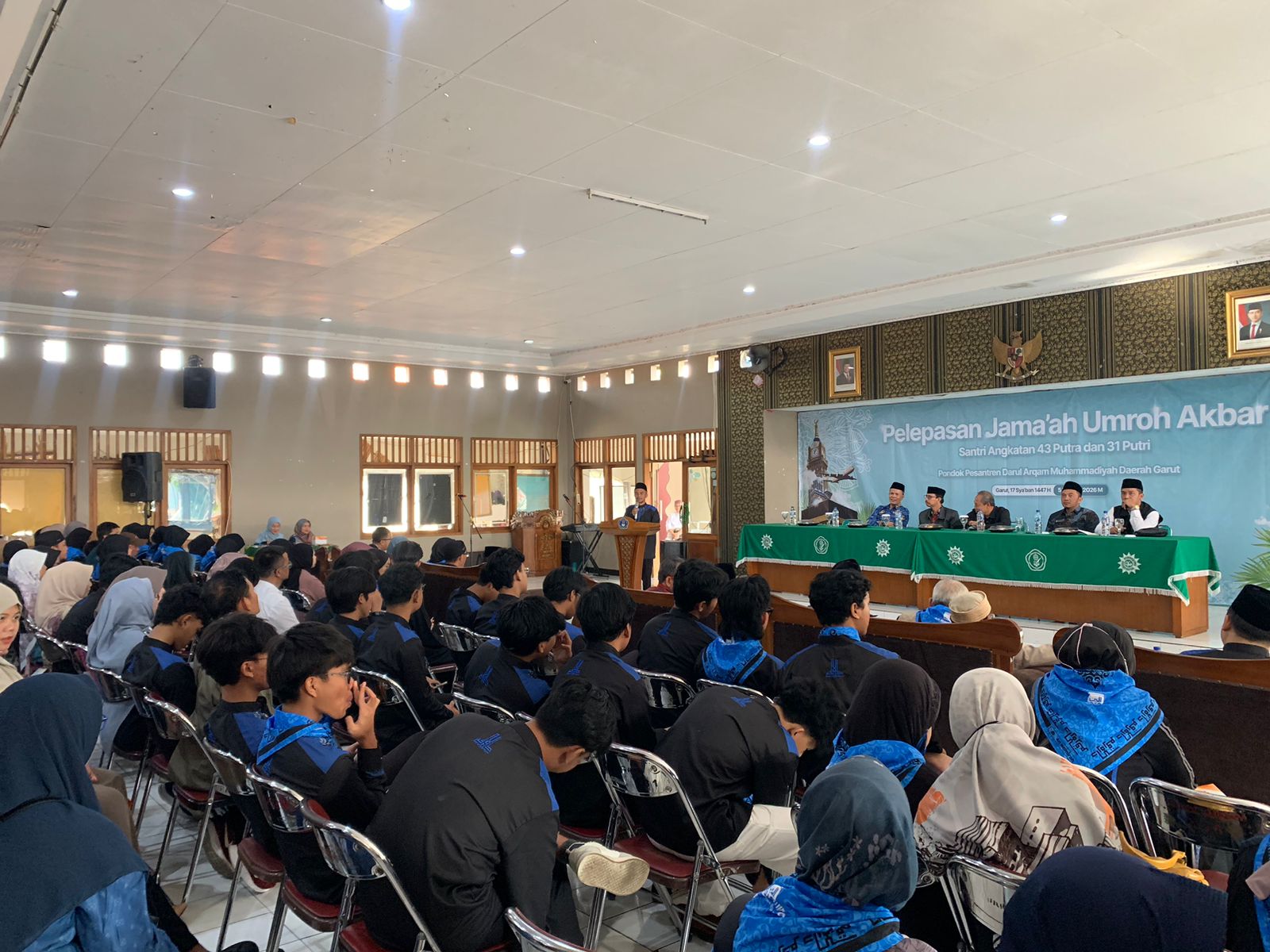 Pelepasan Jemaah Umroh Akbar santri kelas enam dan jemaah reguler di Aula Pondok Pesantren Darul Arqam Muhammadiyah Garut, Kecamatan Cilawu, Kamis (5/2/2026).