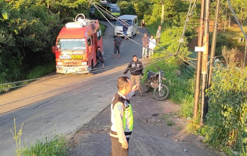 GARUT BERKABAR, Banjarwangi – Jajaran Polsek Banjarwangi Polres Garut bergerak cepat mengamankan lokasi kejadian tumbangnya tiang listrik di Jalan Raya Banjarwangi–Singajaya, tepatnya di kawasan Lawang Angin, Kampung Patrol, Desa Tanjungjaya, Kecamatan Banjarwangi, Selasa (23/12/2025).