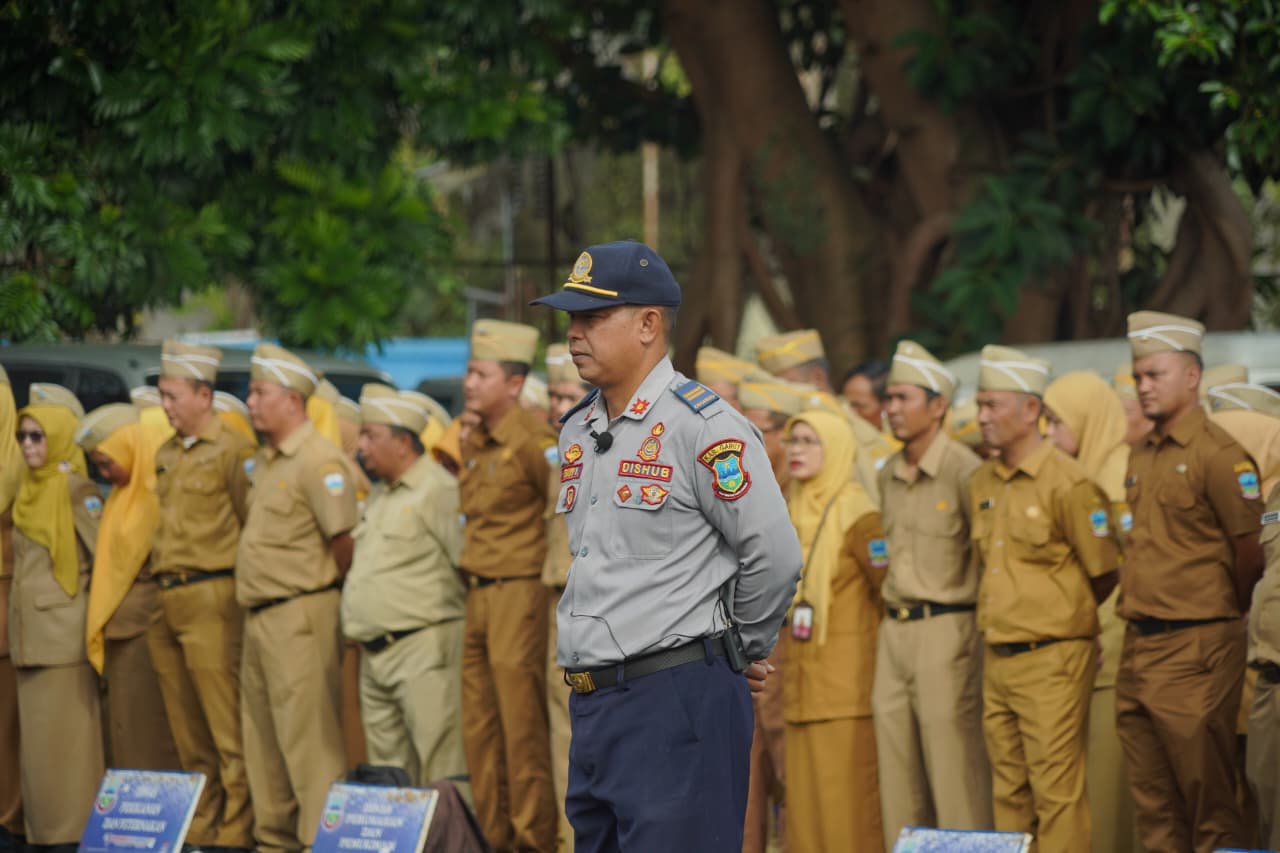 Bupati Garut, Abdusy Syakur Amin, memimpin apel gabungan terakhir tahun 2025 di Lapangan Sekretariat Daerah (Setda) Kabupaten Garut, Jalan Pembangunan, Kecamatan Tarogong Kidul, Senin (29/12/2025).