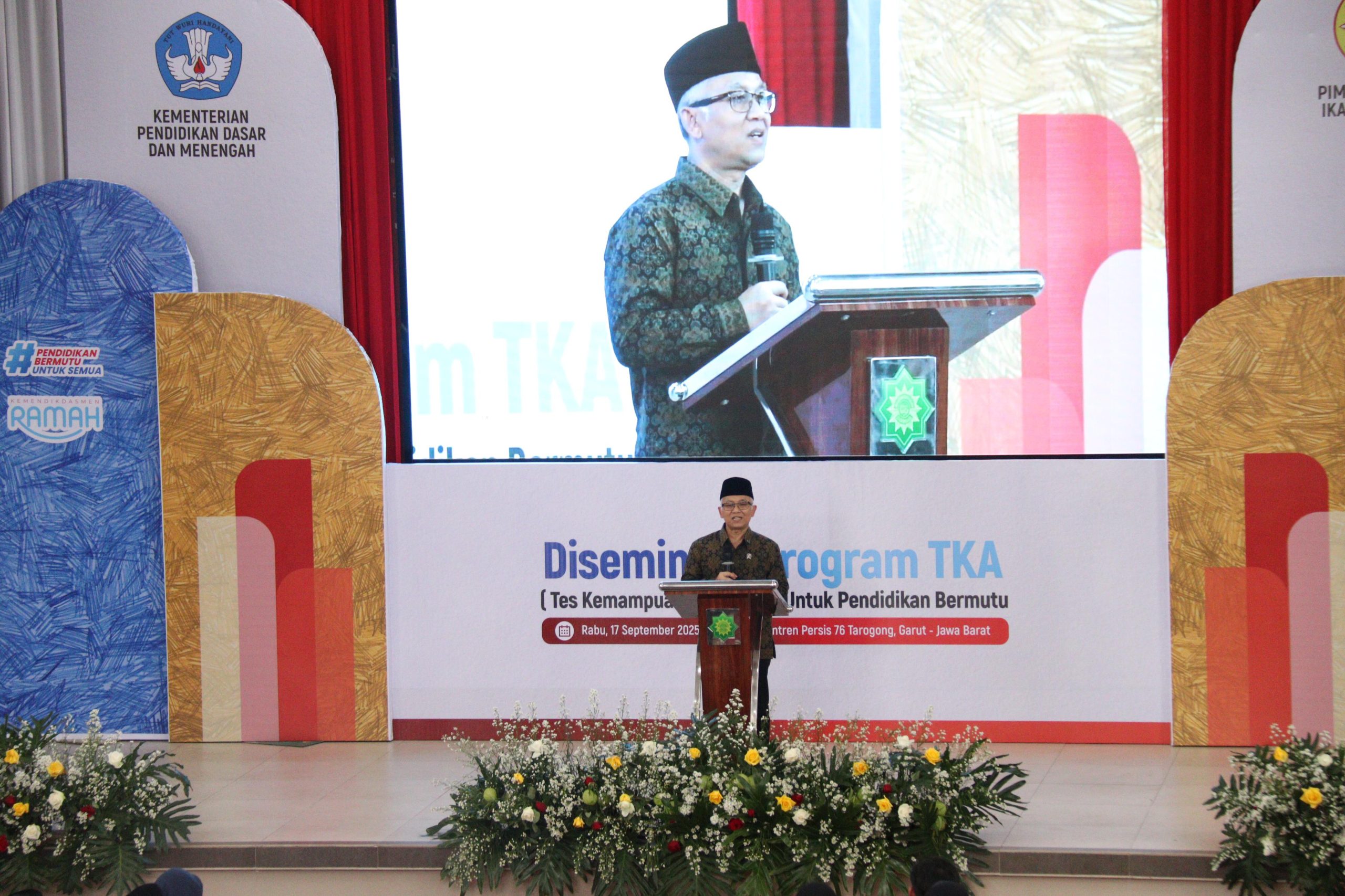 Pesan tersebut ia sampaikan dalam Seminar Interaktif Diseminasi Program Tes Kemampuan Akademik untuk Pendidikan Bermutu yang berlangsung di Pesantren Persis 76, Kecamatan Tarogong Kidul, Kabupaten Garut, Rabu (17/9/2025).